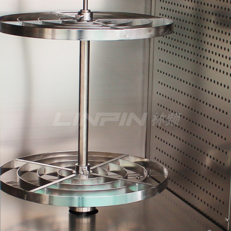 試樣轉(zhuǎn)盤 兩層不銹鋼轉(zhuǎn)架(也可根據(jù)客戶要求定制隔板樣品架) 轉(zhuǎn)速: 1~5r/min